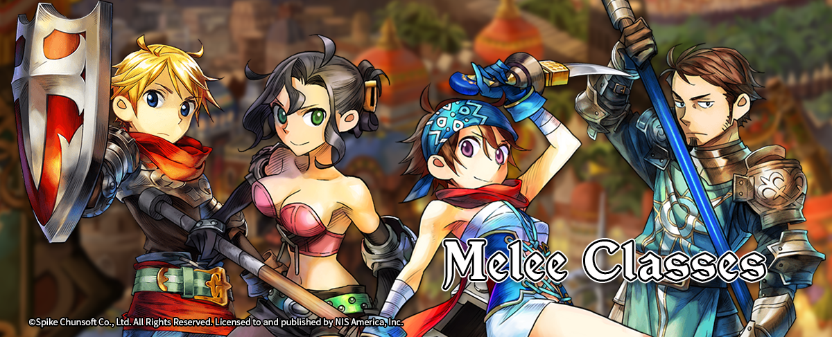 Melee units are characterized by their high attack and defense, and specialize in close combat. They also have the ability to Guard, which negates all damage up to a certain point. Melee units have low magic defense, so caution is recommended when facing enemy Magic units.