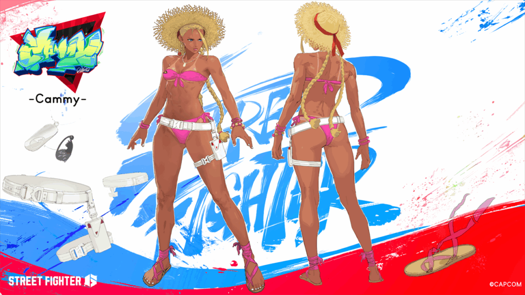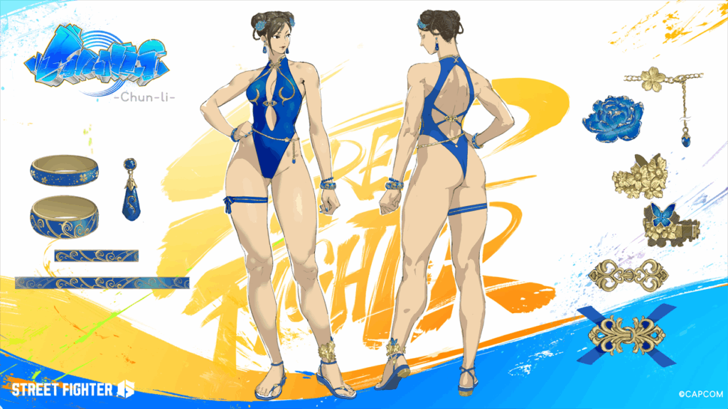 This round features costumes for Kimberly, A.K.I., Cammy, Chun-Li, Jamie, Manon, and Luke. These are swimsuit outfits, which does make sense because it is summer, and also we’ve had themed outfits for other releases in Street Fighter IV and Street Fighter V.